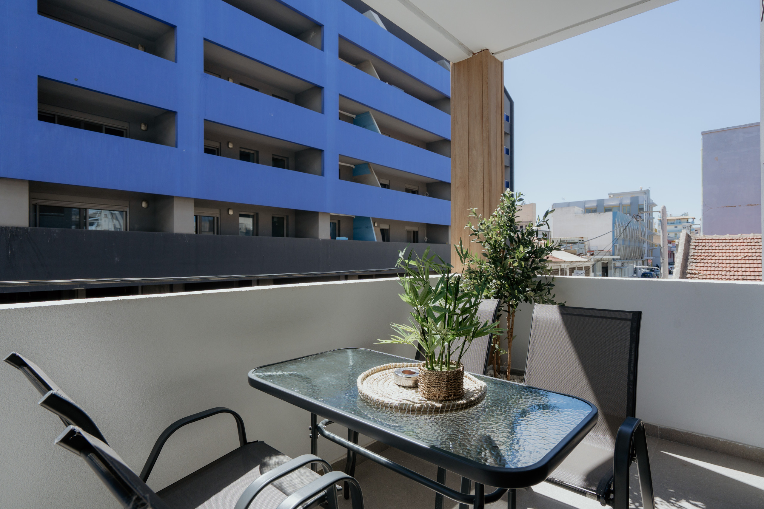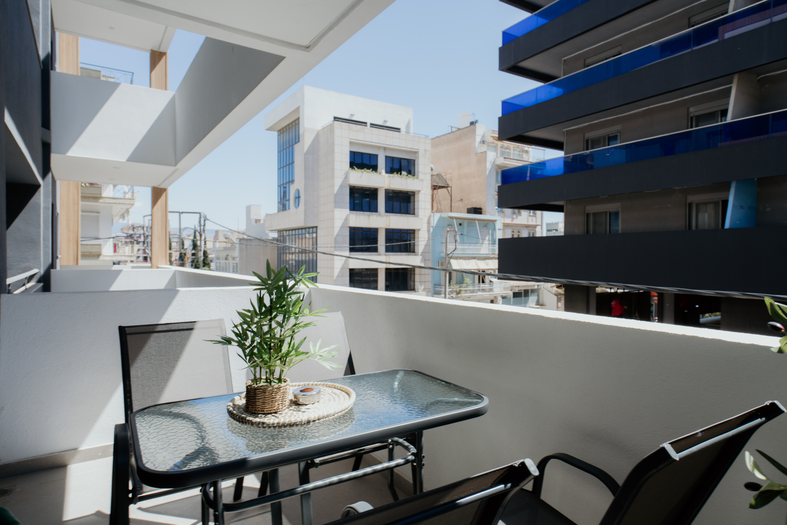 Perched on the 4th floor of a modern, island-themed building in Piraeus, Paros is a 2-bedroom, 2-bath retreat for travellers ready to explore the Greek islands. With sleek lines, a fully equipped kitchen, A/C, Smart TVs, and a breezy balcony, it’s the perfect mix of city convenience and Cycladic calm—just minutes from the port.